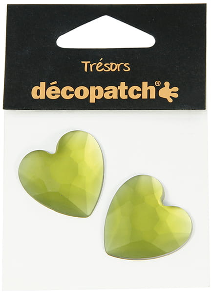Kryształkowe ozdoby serduszka zielone śr.30mm 2szt., Decopatch